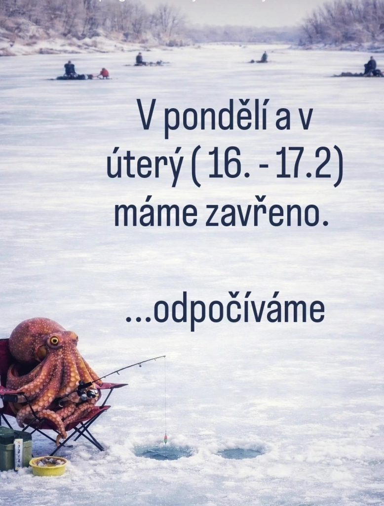 Máme zavřeno. Těšíme se na Vás opět ve středu 18.2. Děkujeme za pochopení.