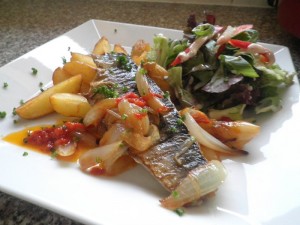 Filet z makrely s pečenou šalotkou a chilli-limetkovým glazé